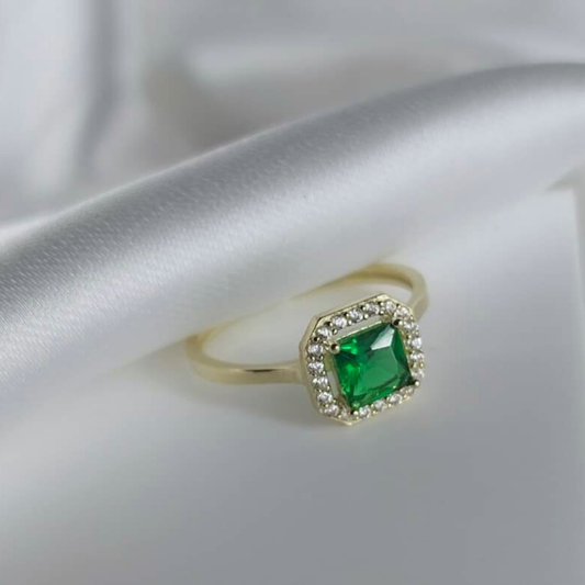 Anillo churumbela con piedras verdes en Oro amarillo de 10k