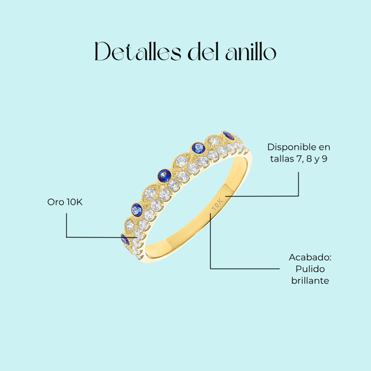 Anillo churumbela con piedras azules en Oro amarillo de 10k