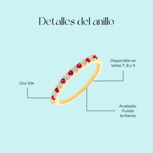 Anillo churumbela con piedras rojas en Oro amarillo de 10k